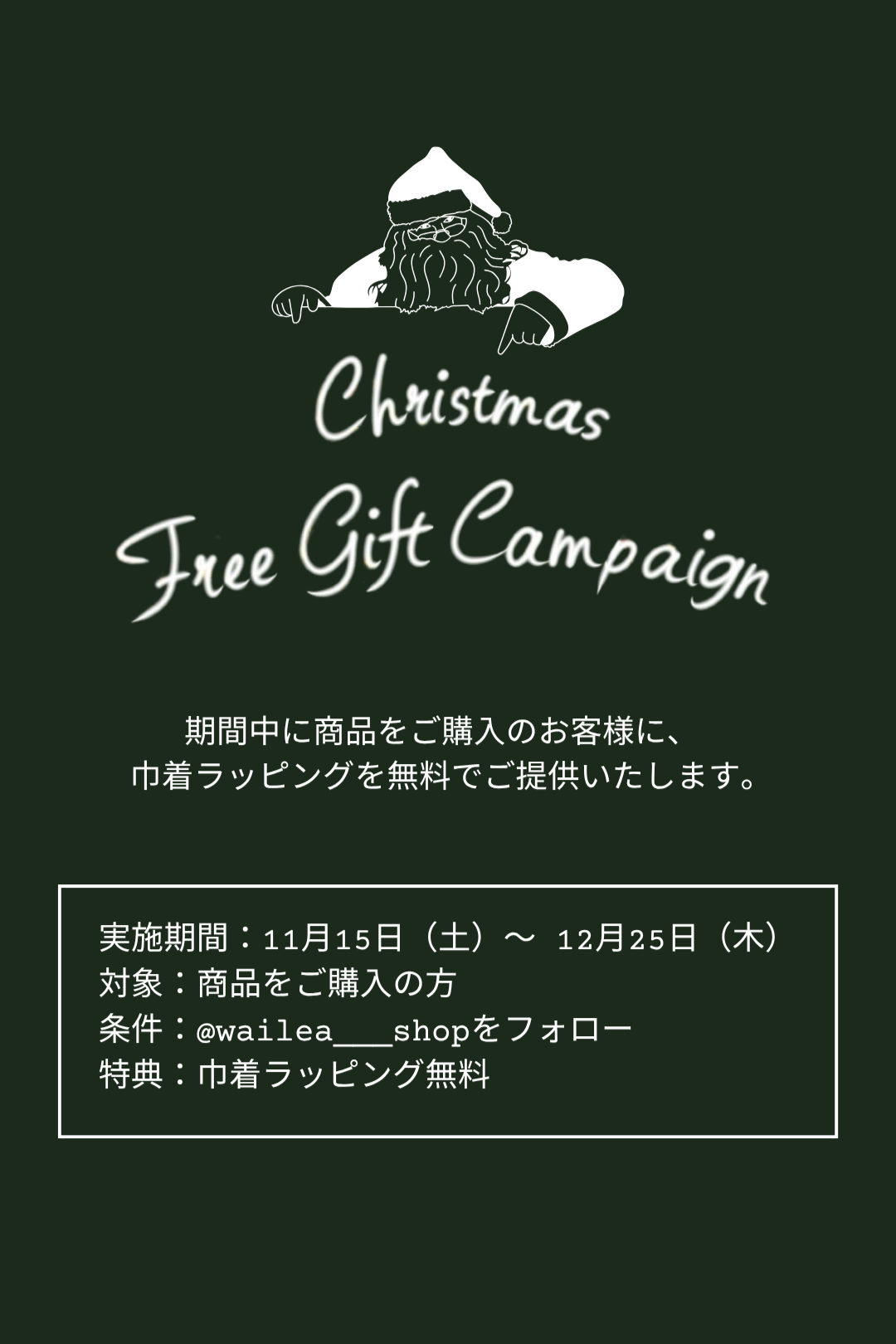 ⁂Christmas Free Gift Campaign⁂ クリスマスギフトキャンペーンのお知らせです。 11月15日からクリスマスまでの期間限定で巾着ラッピングを無料でご提供いたします。 大切な方への贈り物に、どうぞこの機会をご利用くださいませ。