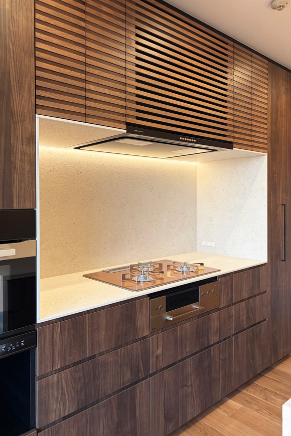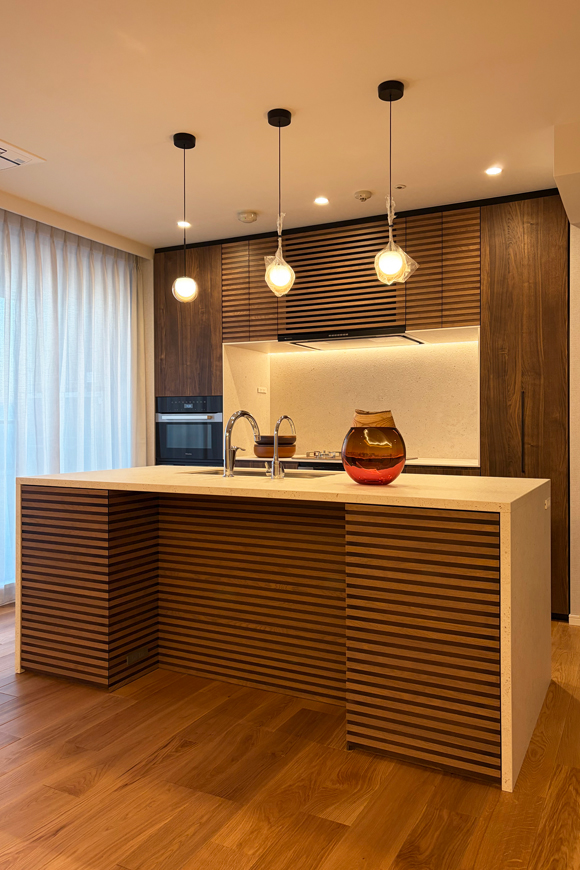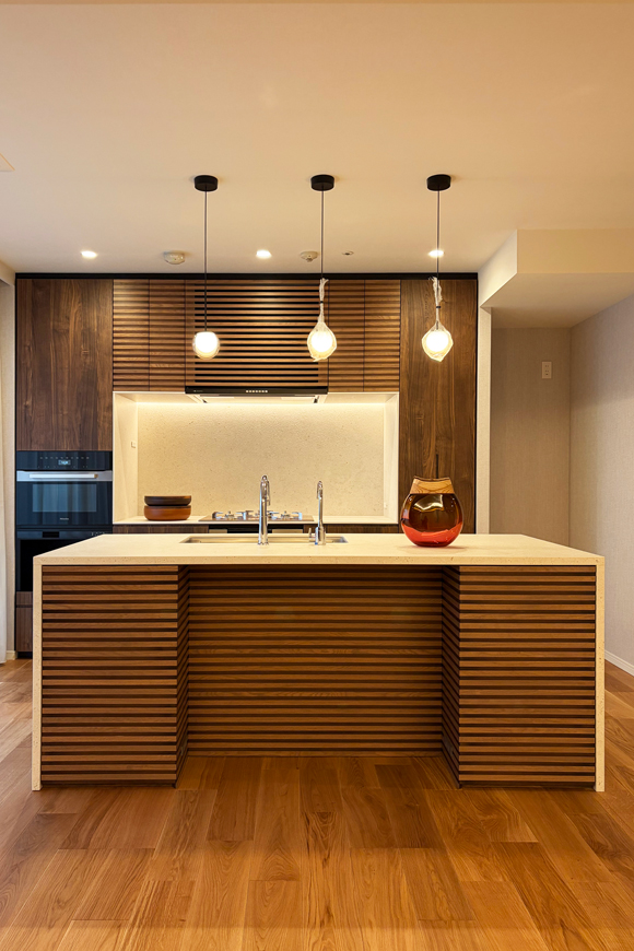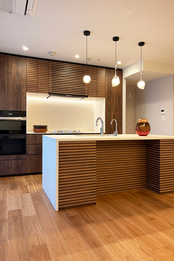 Kitchen Case102 □仕様 サイズ:W2110×D990 カウンター:デクトン 扉:メラミン化粧板 レンジフード:ARIAFINA コンロ:リンナイ 食洗機:Miele オーダー造作キッチン 事例102 WAILEAはお客様の理想のキッチン空間を実現するために、オーダーキッチンの制作、インテリアデザインを賜っております。ご相談は無料ですのでお気軽にお問い合わせください。