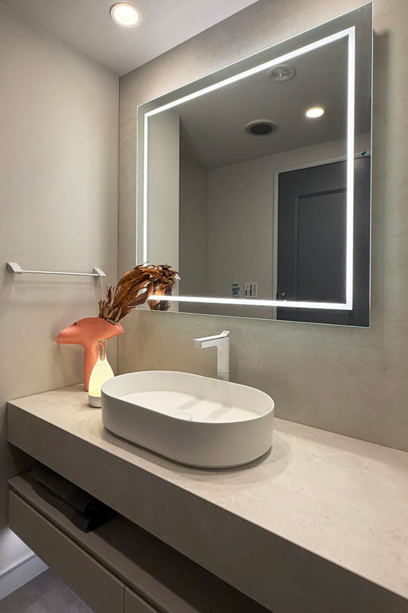Powder Room Case 170 □仕様 サイズ:W1400×D562 カウンター:デクトン 扉:メラミン化粧板 洗面器:陶器 水栓:SANEI K4732NJV-2T-MWP-13 オーダー洗面化粧台 事例170 WAILEAはお客様の理想の洗面所空間を実現するために、オーダー洗面化粧台の制作、インテリアデザインを賜っております。ご相談は無料ですのでお気軽にお問い合わせください。