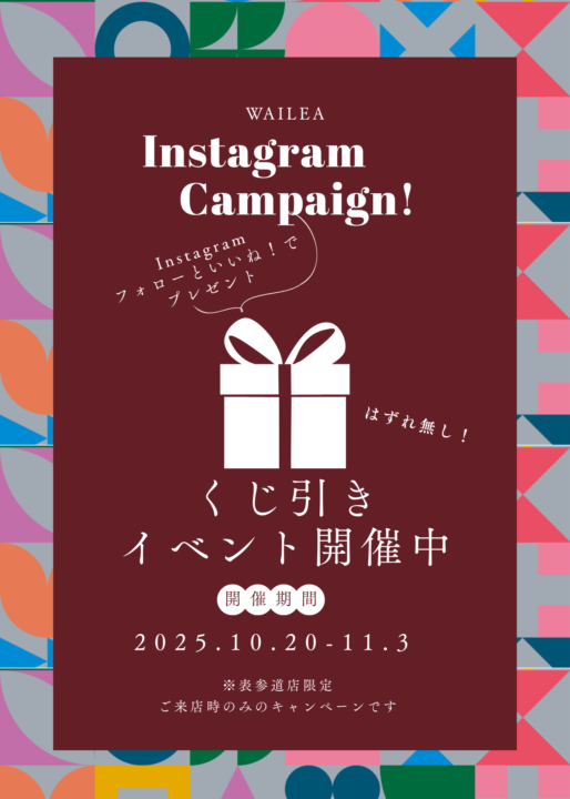 WAILEA表参道「くじ引きイベント」開催いたします【終了いたしました】